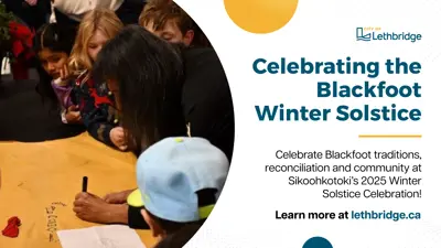 The City of Lethbridge (Sikoohkotoki) is proud to announce the 2025 Blackfoot Winter Solstice Celebration. The annual event honours the traditions and cultural heritage of the Blackfoot people.