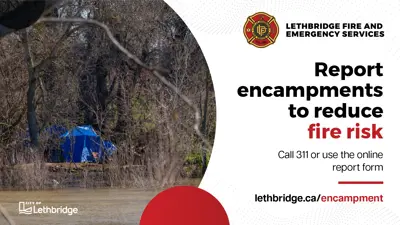 Lethbridge Fire and Emergency Services, Lethbridge Police Service and the City of Lethbridge’s Community Social Development department are reminding residents that reporting encampments plays a key role in preventing fires and supporting a coordinated, community-based response.